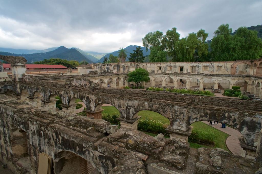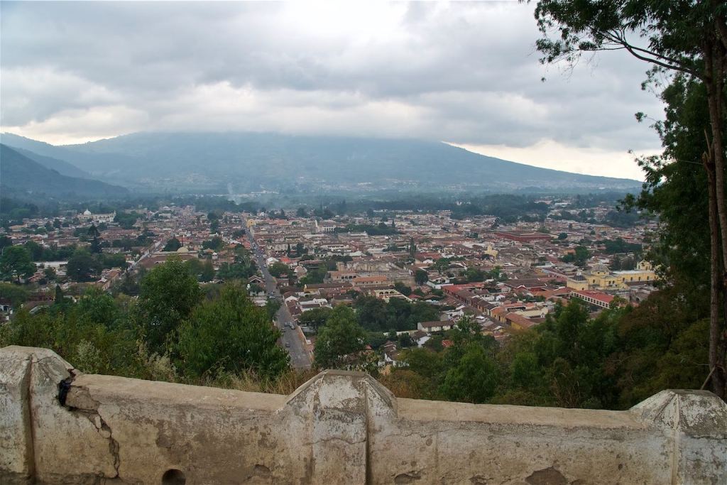 We woke up to overcast skies. We went to get breakfast at a place called the Bagel Barn. It wasn’t great. The bagels were very dry, and despite asking for chocolate chip, tragedy struck when I received raisin. After this, we walked briefly around Parque Central, where they have a fountain of mermaids shooting water from their breasts. That’s just what mermaids do. From there, we walked up Cerro de la Cruz, a hill overlooking the city. From above, we could see that the town of Antigua is in a grid, something that made Antigua unique in its day. The peak of the volcano was still obscured by cloud cover, and though the weather reports predicted a clearing around 11, this would never happen.
