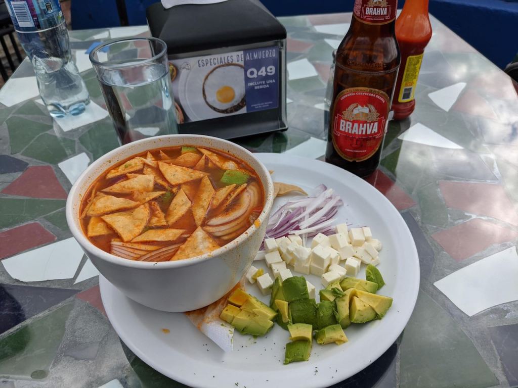 We were able to climb up into the choral area above the chapel for a good view over the ruins and courtyard with the mountains in the background. After our self-guided exploration of the convent and grounds, we went to go get some lunch. We went to a place called Cafe Sky, so we could be on the roof and look out. I got a massive tortilla soup with avocado and onion. Antigua was historically known for its usage of avocados, and the variant they most often consumed was brought to California, and is said to have cultivated the entire avocado industry in California. That’s big doings. No Antigua, no avocado toast.