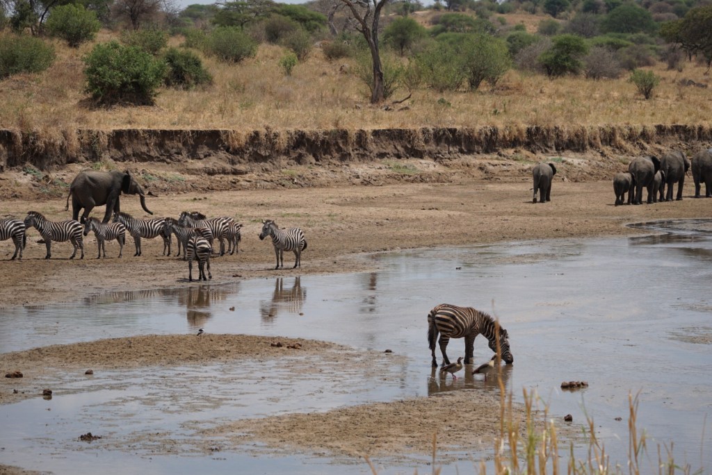 We stopped to have lunch next to what remains of the Tarangire River at this time of year. Since it is the dry season, it’s more of a vague stream through some mud. The safari company gave us boxed lunches, which we ate while watching zebra and elephants walk along the river bed. Not a bad view for our basic lunches.