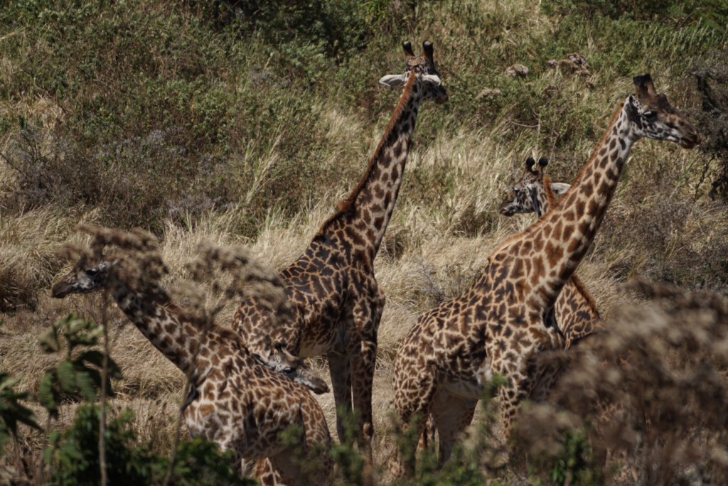 It was a very long day that was primarily driving from the Ngorongoro Crater into Serengeti National Park. It took us maybe three hours or so just to leave the crater conservation area, and another two hours to get to the registration area for the Serengeti. Enroute, we saw a lot of giraffes. While they are herd animals, it’s evidently rare to actually see them in large groups. We counted about twelve hanging out together. 13 if you count me wearing my sweet stylin’ giraffe sunglasses. (See previous blog post for example).