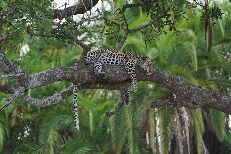After that, things quieted down for a spell. We saw a lone giraffe up close, and later on saw several safari jeeps parked, and found out there was a leopard in a tree. Leopards are one of the most difficult animals to find on safari, so we felt pretty lucky, even though it was a ways away.