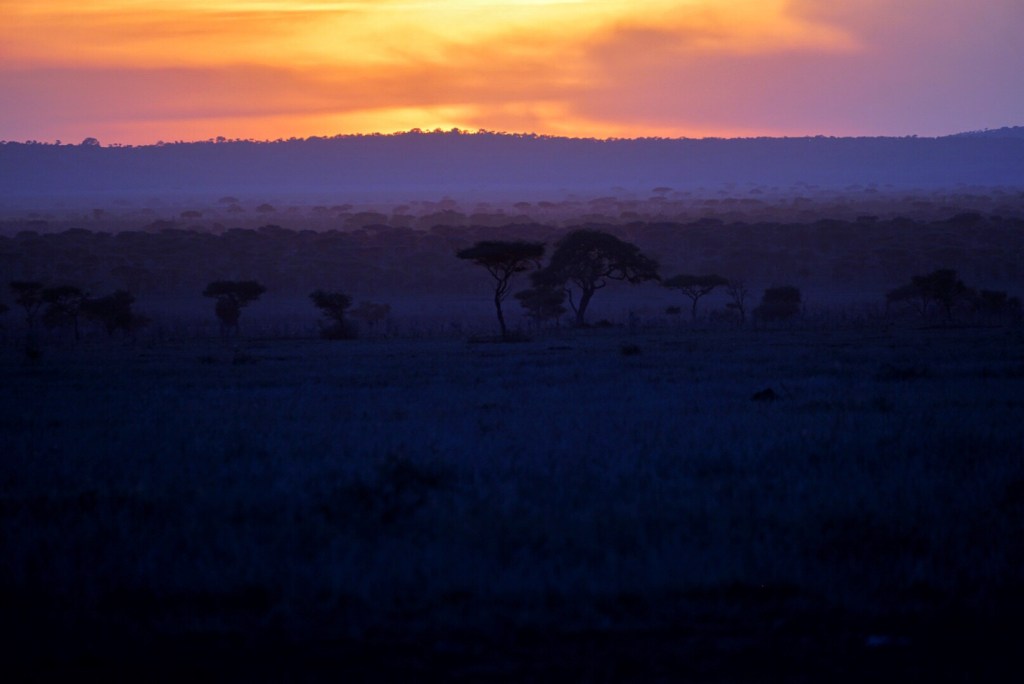 We watched the sun set before going to dinner in the main tent. There are only two staff working here, and only three tents being used currently, so we didn’t have someone staring at us while we ate like we did last night. While the staff at the retreat in Ngorongoro were very friendly and attentive, they were perhaps too attentive. Sometimes, you just want to eat your meal without an extra set of eyes on you while you try your first bite of food. In any event, the food served in the tent was quite good for being served in the middle of the bush. We were escorted back to our tent and prepared for another early start to a big day in the Serengeti tomorrow.