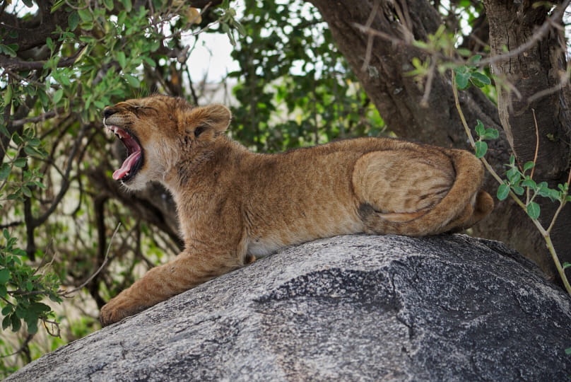 It wasn’t the best angle, but things were about to get real crazy in the next couple kilometers when we chanced upon a smaller rock outcropping with a mother and three cubs lounging on it at our eye level. No other safari trucks in sight, either.