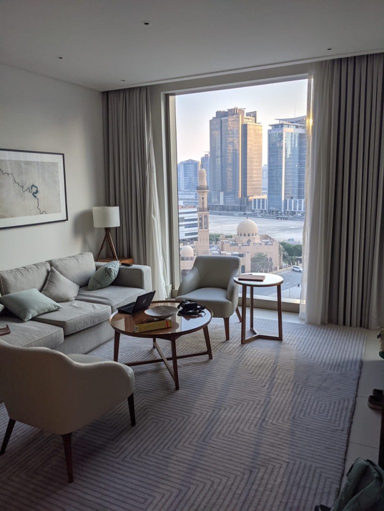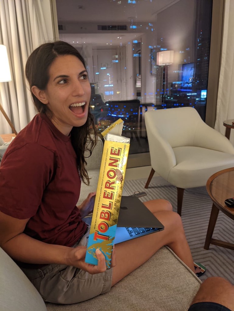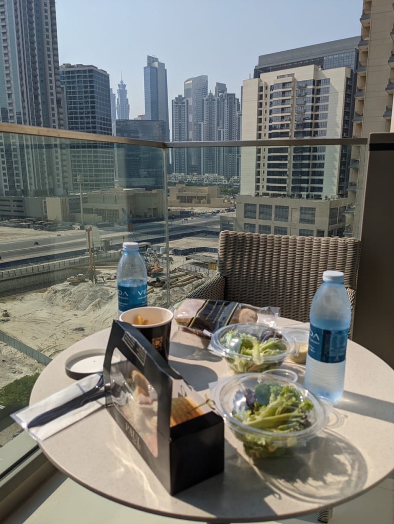 Stress eating has taken hold of Nicole. We continue to refresh our apps that will tell us when our results are in. We hope to wake up to freedom and maybe a view of Dubai that goes beyond our present 160º view. They tell me the Burj Khalifa is right behind our building, but I have yet to see proof of this. Results are expected shortly after the 24 hour mark, so even if it’s delayed a bit, I can’t imagine it being as slow as Quest Labs, which took two weeks. I feel a bit like Edward Snowden — isolated in a hotel room, escaping Americans. After just a day in quarantine, however, we have taken to lots of eating. If this keeps up much longer, we will turn into blimps.