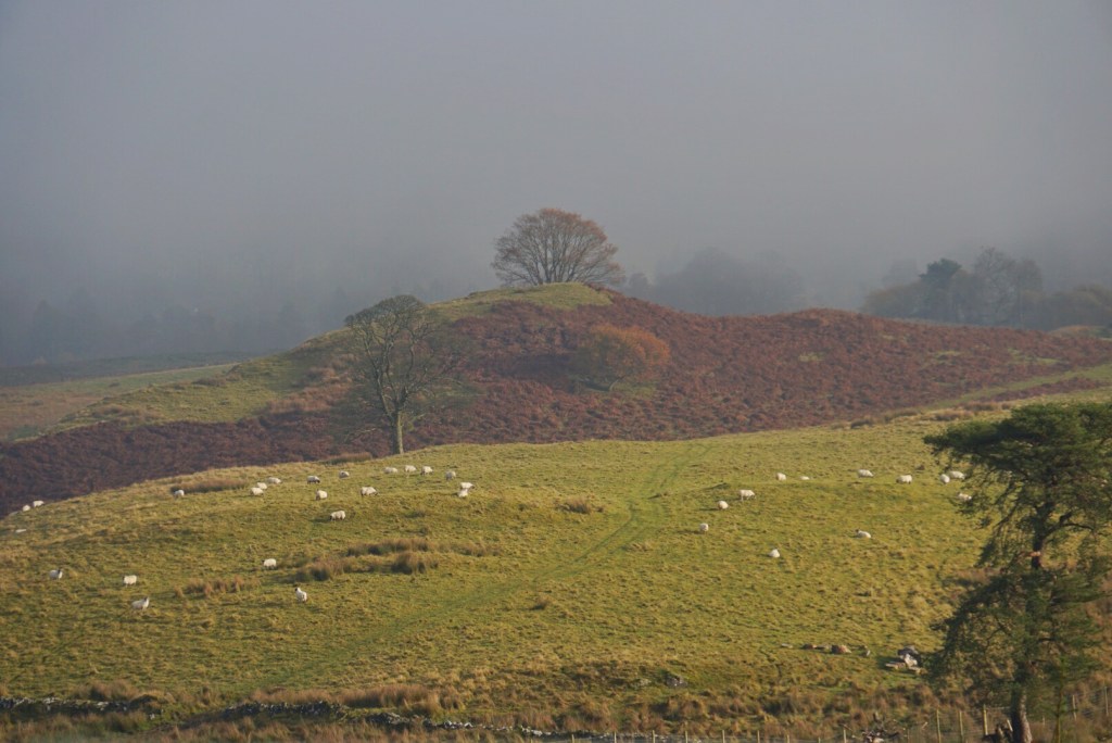 With the heavy mist and fog gone from our previous walk, we could actually see things further than 30 feet in front of us and remark about entire fields that had previously been invisible.
