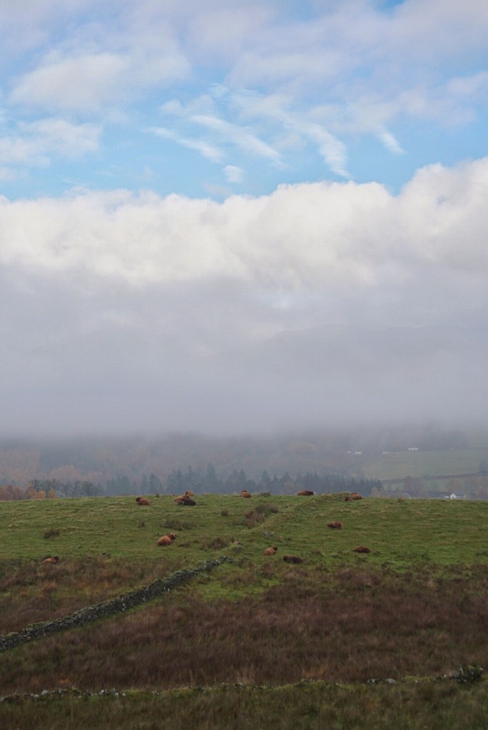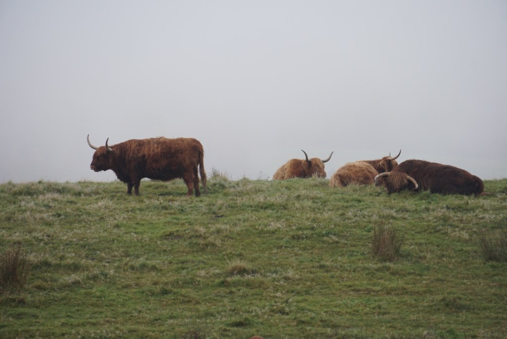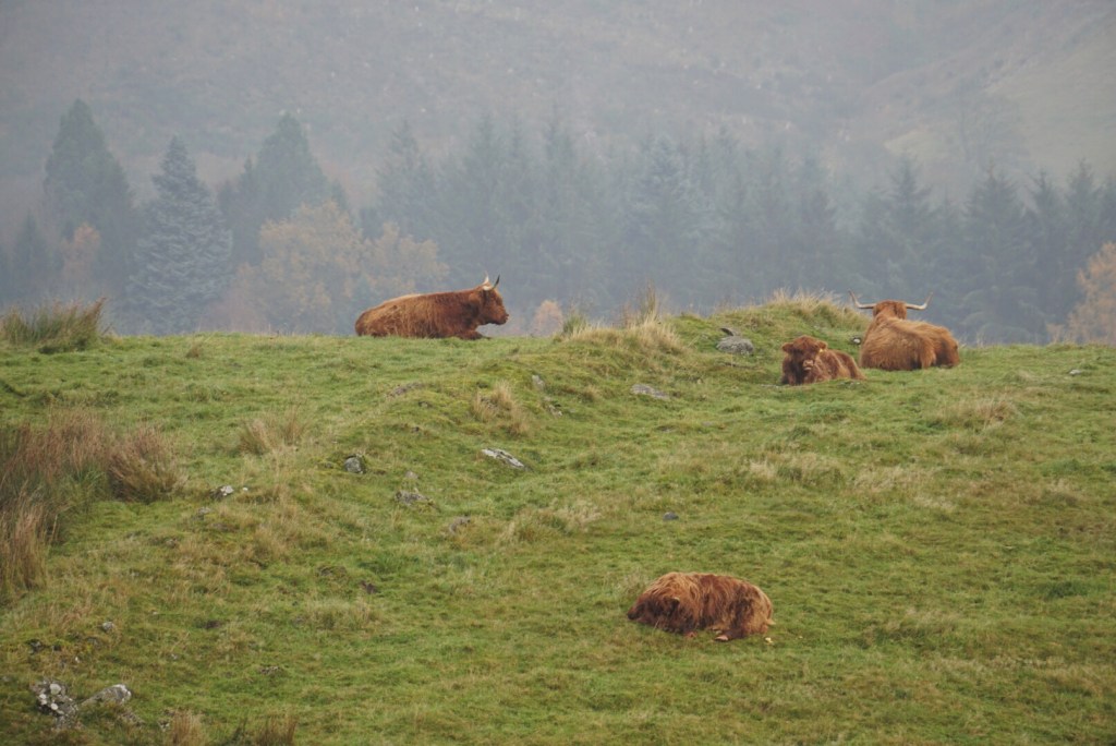 A little ways down the West Highland Way, we saw these Highland cattle, which are just brown cows (the chocolate milk kind) that have developed rather shaggy coats to handle the inclimate weather of the region.