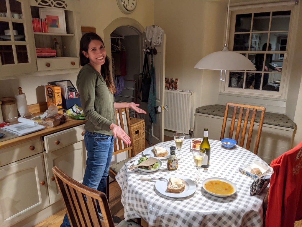 The overly complicated change in flight schedules these days means we can’t connect flights in London without spending the night there. As we weighed our options, we found that it’s only $60 to rent a car here and drop it off at Gatwick the day after tomorrow. Given the out of control numbers of cases and high death rate in England right now, the train didn’t seem like the safest choice, so the great British road trip seems in order for tomorrow. We made ourselves a nice dinner to try and relax after the stress of making new plans. Again, a reminder to everyone — don’t make plans. It’s still 2020 and your plans are very unlikely to succeed. I hope Nicole made a nice playlist for the drive tomorrow.