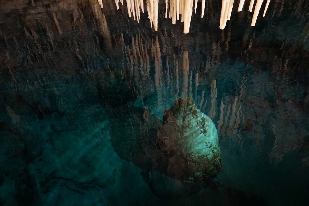 We had to pay for entry, but a small price to pay for what was essentially a private tour. The guy said he normally takes down groups of 60 at a time. We went inside the one called Crystal Cave, named for its crystal-colored stalactites.