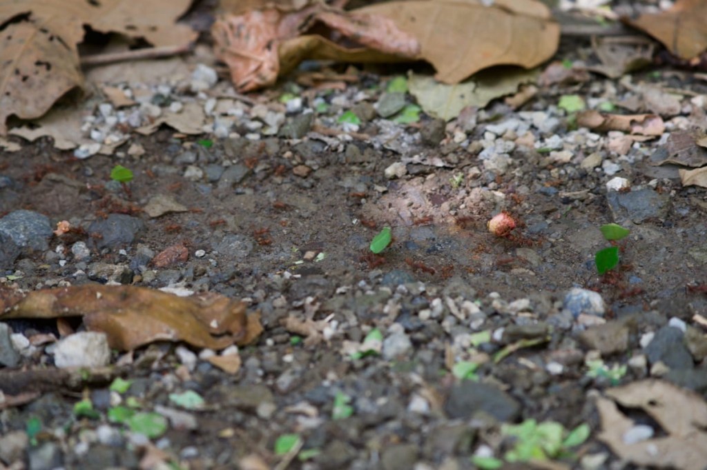 While we were on the lookout for wildlife, the most plentiful creature was the ant. We saw lots of them marching around carrying small leaves. We did our best to not interrupt their supply lines which were quite involved. At one point we encountered an ant hive so large, it was actually labeled on the path with a sign and explanation. They had somehow made the base of a large tree their home with numerous entrances where we could observe their activities.