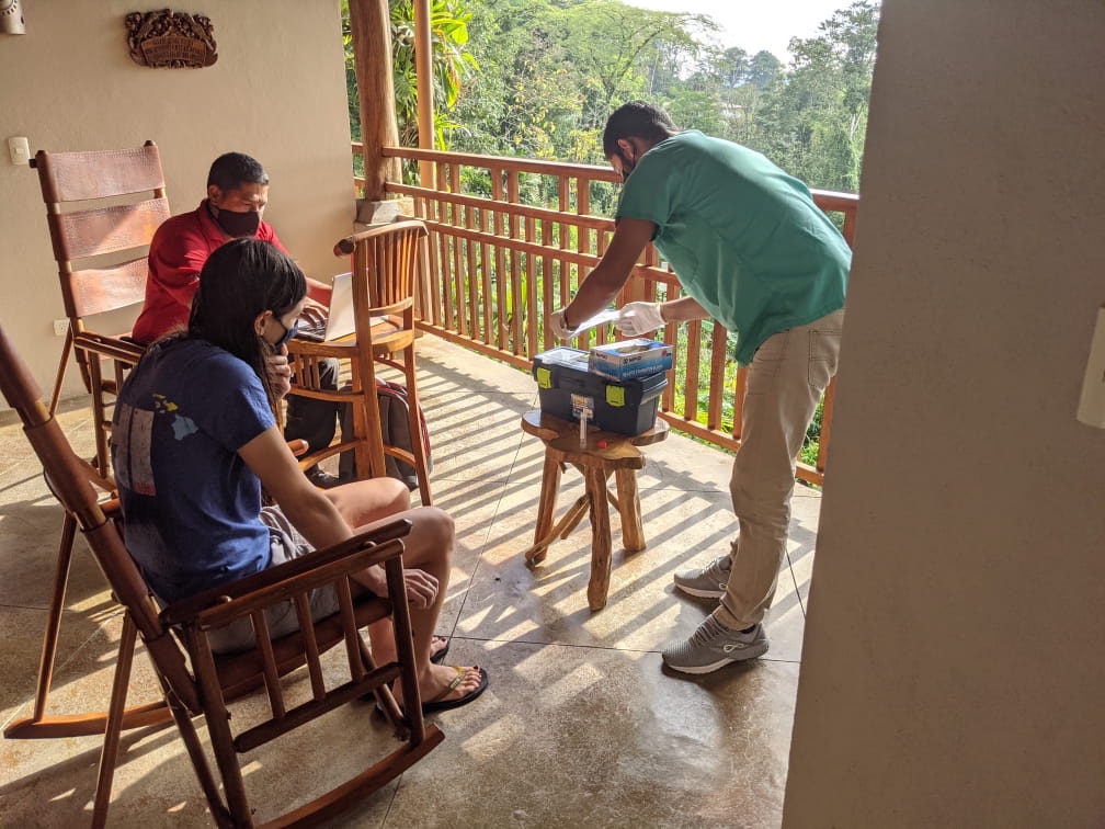 The rainforest was very active with noises, but we couldn’t see much. I saw a few birds here and there, but no sloths. After an hour or so, we had some visitors in the form of two health officials who had come to do a Covid PCR test on both of us. They gave it to us on the balcony, which made for good scenery if nothing else. It involved a throat and nose swab. Doing both is never fun, especially for Nicole, who insists that there is nothing worse in the world than a throat culture.