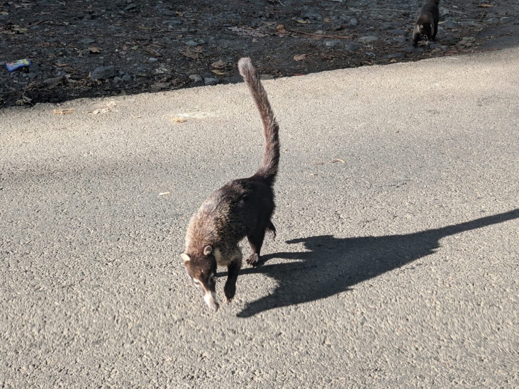 After zip lining, we made a quick stop for a picture of the volcano before returning to the Lost Iguana to relax and enjoy the WiFi before it inevitably gets shut off at 7pm. On our way back, we encountered several coati whose native habitat appears to be the middle of road.