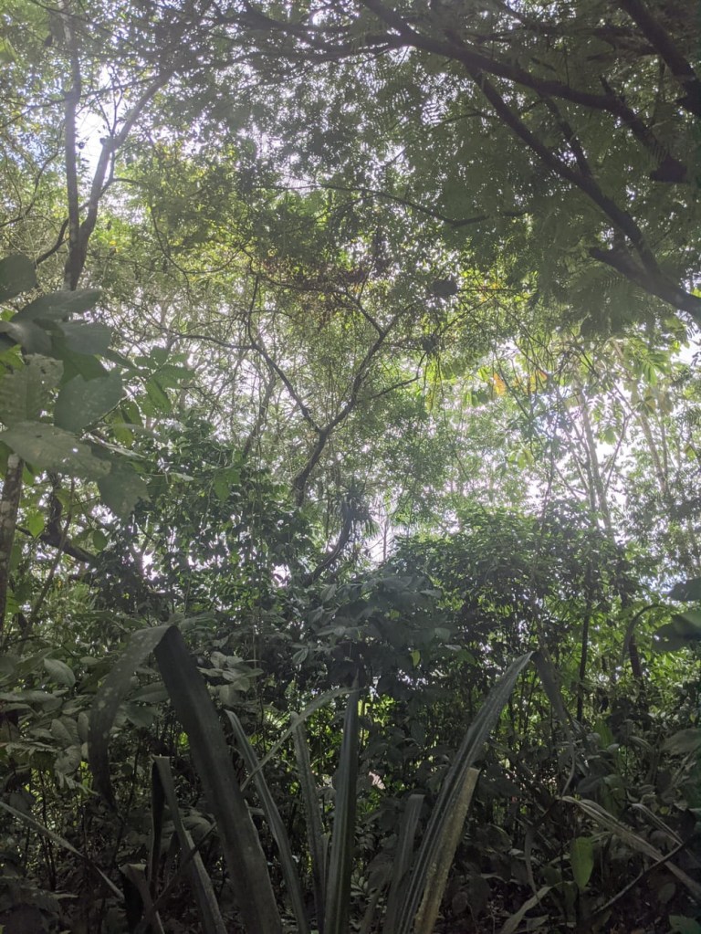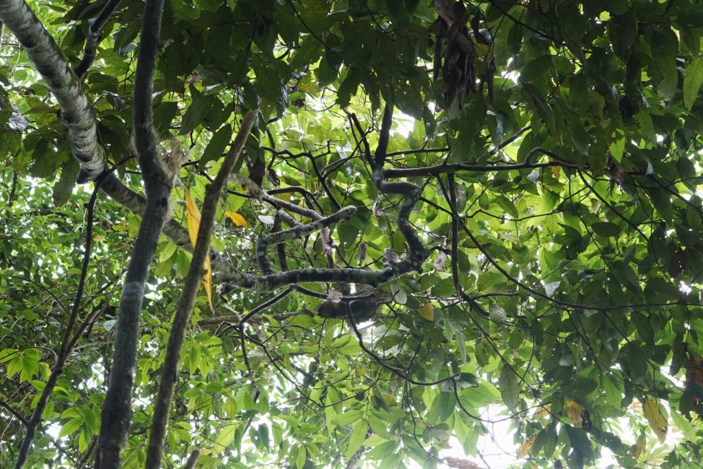 Interestingly enough, the different companies all kind of use the same network of trails, so even though our tickets were $10 per person, we were given the same access as people who paid much more. The downside is that it was very difficult for us to spot the sloths. They are slow-moving creatures who spend most of the day sleeping. They only come to ground about once per week to drop a deuce. Their digestive system works very slow you see. Furthermore, the dense canopy had us thinking that a clump of leaves or a shadow was a sloth. They are very well camouflaged with their dark, wet, mossy fur. The picture below is roughly our general vantage point of the trees.