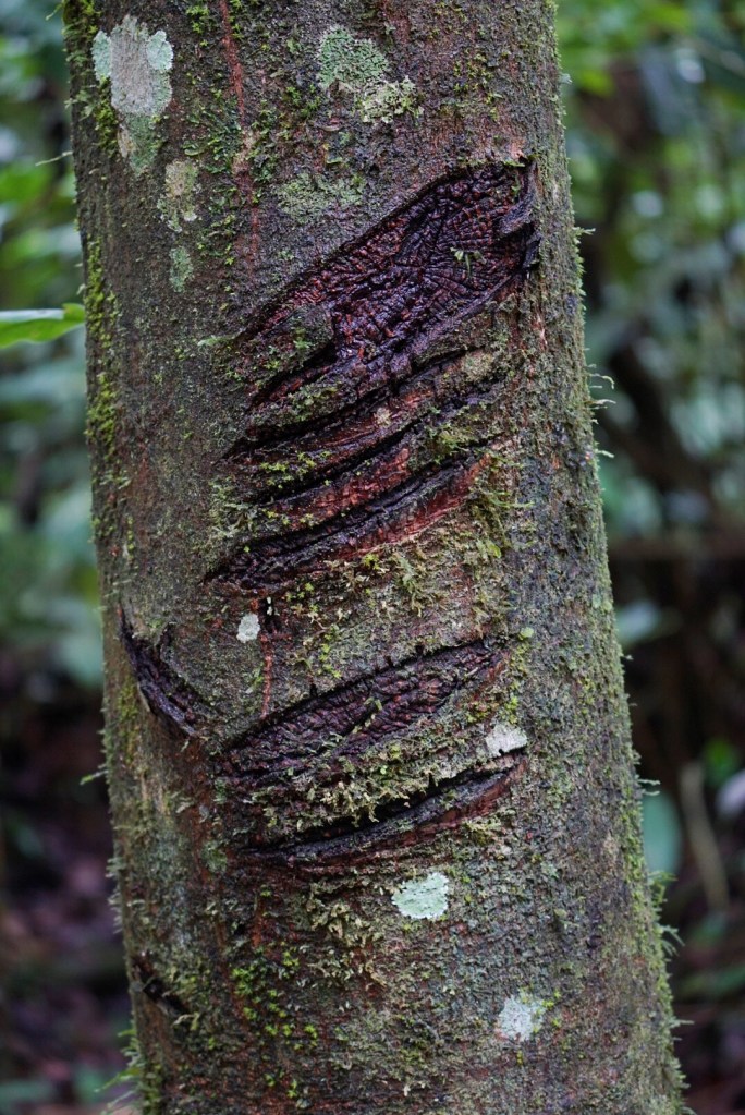 In order to protect our camera equipment (and us), we forged on to one of the several “refuge” areas that were along the trail — basic covered shelters to protect people from the rain. I guess the trail makers are working under the assumption that it rains in the rainforest. It rained quite hard for a while before it let up enough for us to emerge from the shelter. We slowly (sloth-like) worked our way back to the exit and on our way.