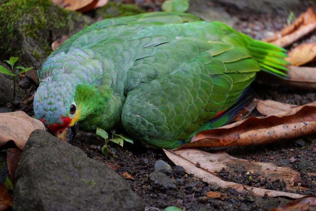 So perhaps we are not completely worthless. While scanning the treetops for more sloths, we heard something crashing through branches and landing on the ground 30 m away from us. It was a green macaw, and it didn’t look in good shape. We had seen what we thought was another bird dart off around the same time, so we don’t know if it had gotten into a fight or if it was perhaps attacked by a bird of prey.