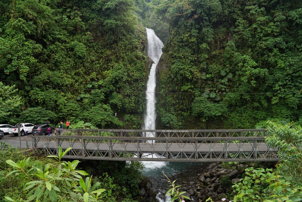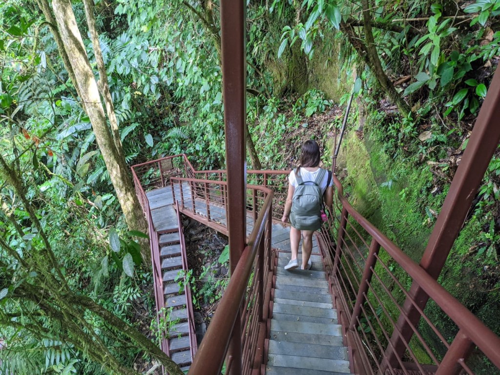 So it was settled. We drove for about two hours on very windy roads, climbing as high as a mile above sea level when we reached the view above. We stopped to take a few pictures before continuing a few km up the road to the actual site of La Paz Waterfall Gardens. I used my limited abilities in Spanish to ask for two tickets. Perhaps my accent was convincing enough because we got charged the local/resident rate of $25. It pays to Duolingo.