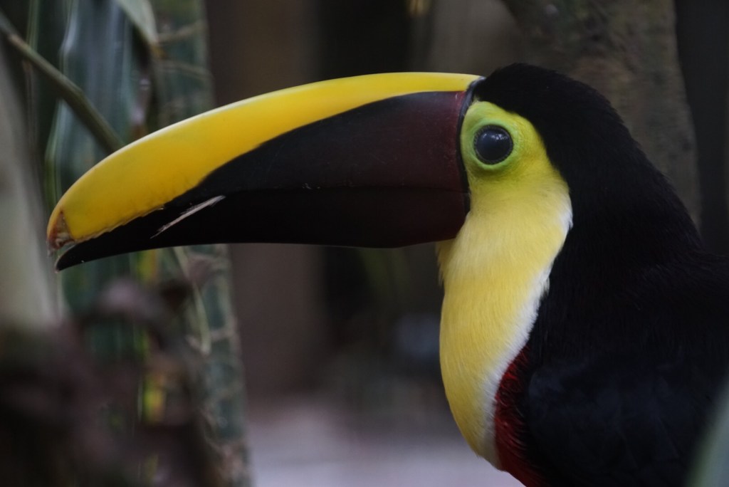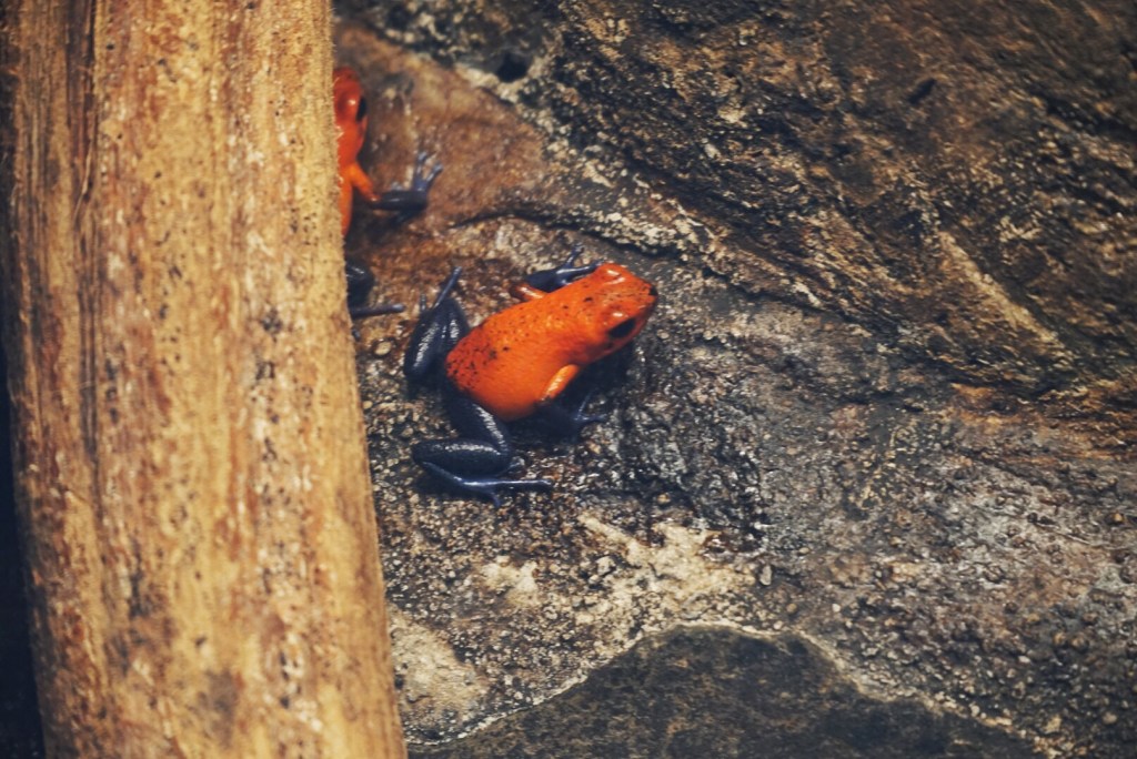 The place is even bigger than we expected. It’s like a theme park of waterfalls and animals. We wound our way through the reptile areas, where we hoped to see the red-eyed frogs, but the gardens boastfully stated on their signs that these frogs were essentially “free range” and that we should just keep our eyes open. We didn’t see any. We did however see a poison dart frog — only because it was behind plexiglass and labeled. It was also extremely small, which is maybe our issue with the red-eyed ones. I had to put on my 350mm telephoto zoom lens to take its picture from two feet away.