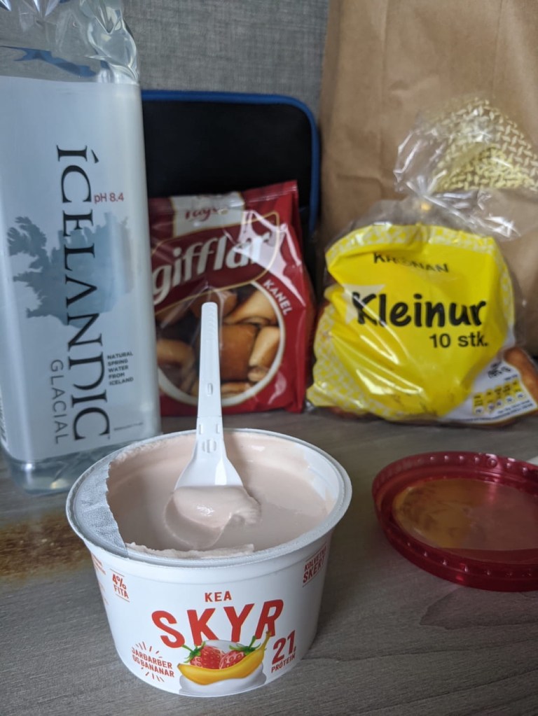 We arrived at our hotel thirty minutes later and were able to check-in at 9am. This was a relief as we could get somewhat settled. We hit up the grocery store across the street to get some items for breakfast, including skyr (Icelandic yogurt), Kleinur (Nordic donuts), and bananas (yellow fruit).