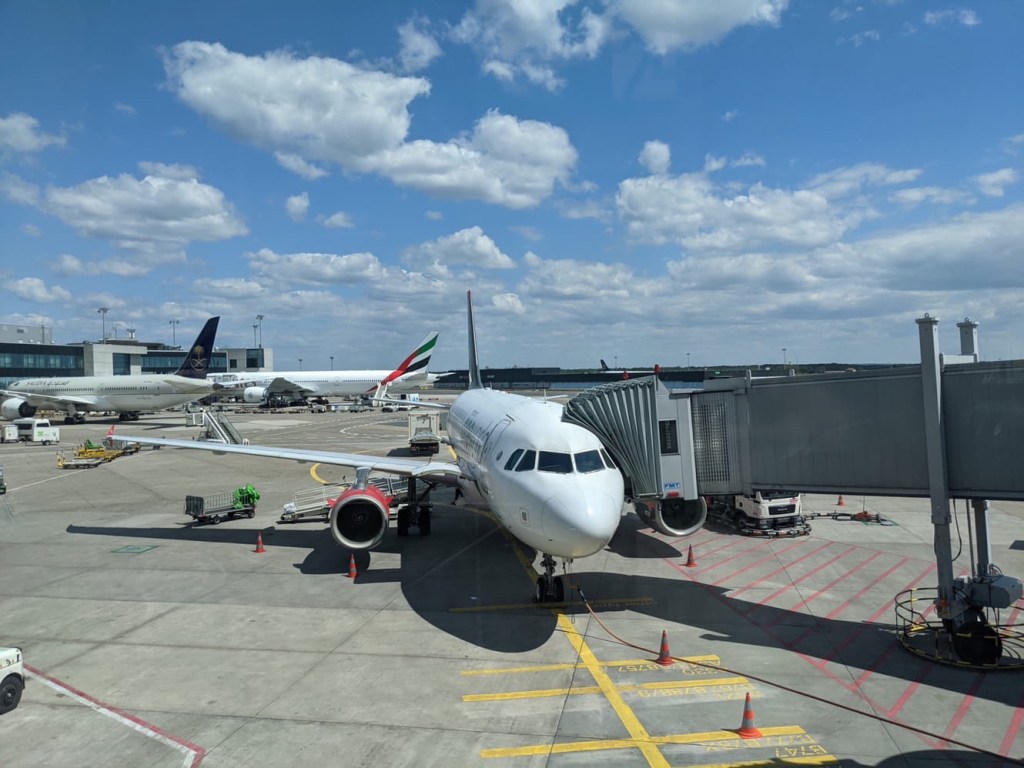 We were bound for Frankfurt, having altered our plan to transit in Amsterdam since that flight had been canceled. #cancelculture We nodded off a little bit enroute to Frankfurt, where we expected there to be other hiccups. We had to pass through passport control, but luckily didn’t have to do security again. At this point, we still hadn’t been able to check-in for our Royal Jordanian flight to Amman, but after grabbing some lunch, we found a gate agent who asked for our covid test results, our proof of health insurance, and a QR code that proved we had pre-registered for a covid test in Amman. We were then issued a health declaration form and two seats together. Things had shockingly worked out very smoothly.