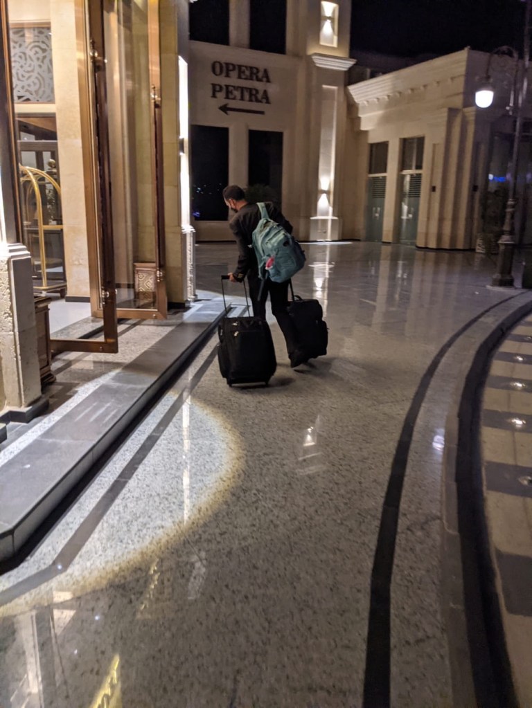 With all this sorted, I confirmed a rental car, Nicole got our hotel for tonight, and we booked our remaining hotels in Jordan shortly thereafter. How glamorous is the standby life? We touched down just before 9pm. We were fairly efficient in getting our PCR test, visa, and got through passport control and customs in less than twenty minutes. This is no longer the land of the midnight sun to be sure. Since we knew it would be dark on arrival, we got a hotel that didn’t require much driving.