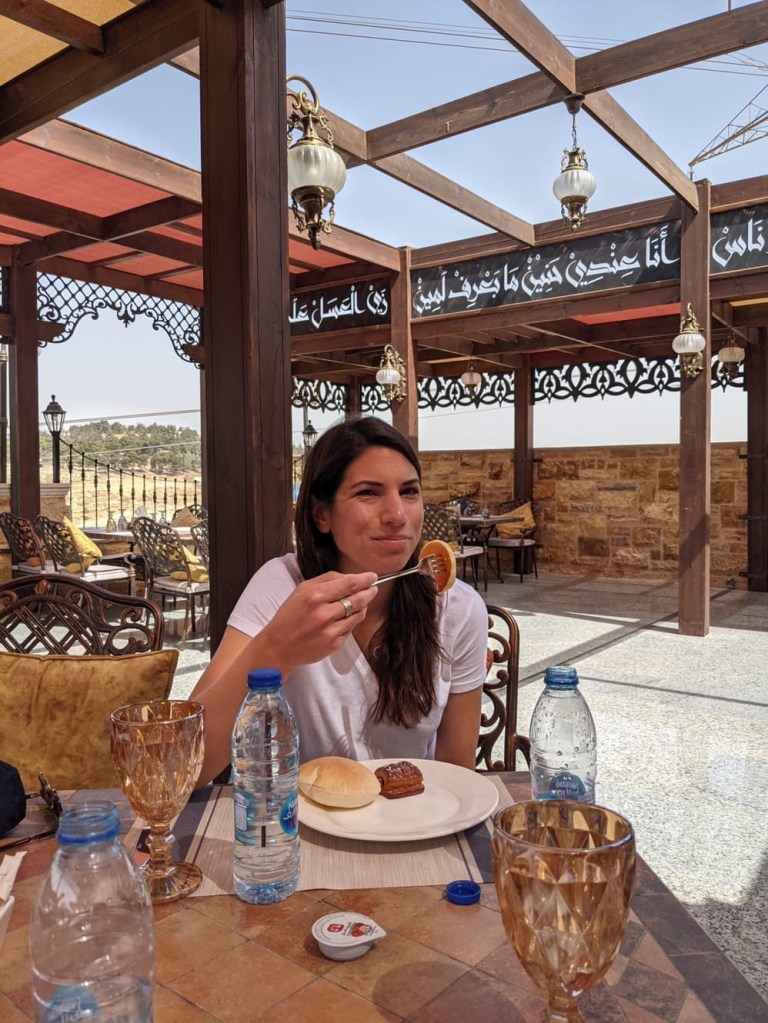 We got in our car and started driving south. It was just over 2 and a half hours from our hotel in Amman to Petra. The scenery was mostly desert with an occasional town. The roads in Jordan are actually much better than I expected. For most of the journey, we were on a major highway (the appropriately named Desert Highway to be exact). We did get motioned to the side at one point for a random check by Jordanian police at a checkpoint. He kept talking to me in Arabic and I just shook my head and shrugged. I eventually showed my passport, the officer said, “Welcome to Jordan,” and we were on our way.