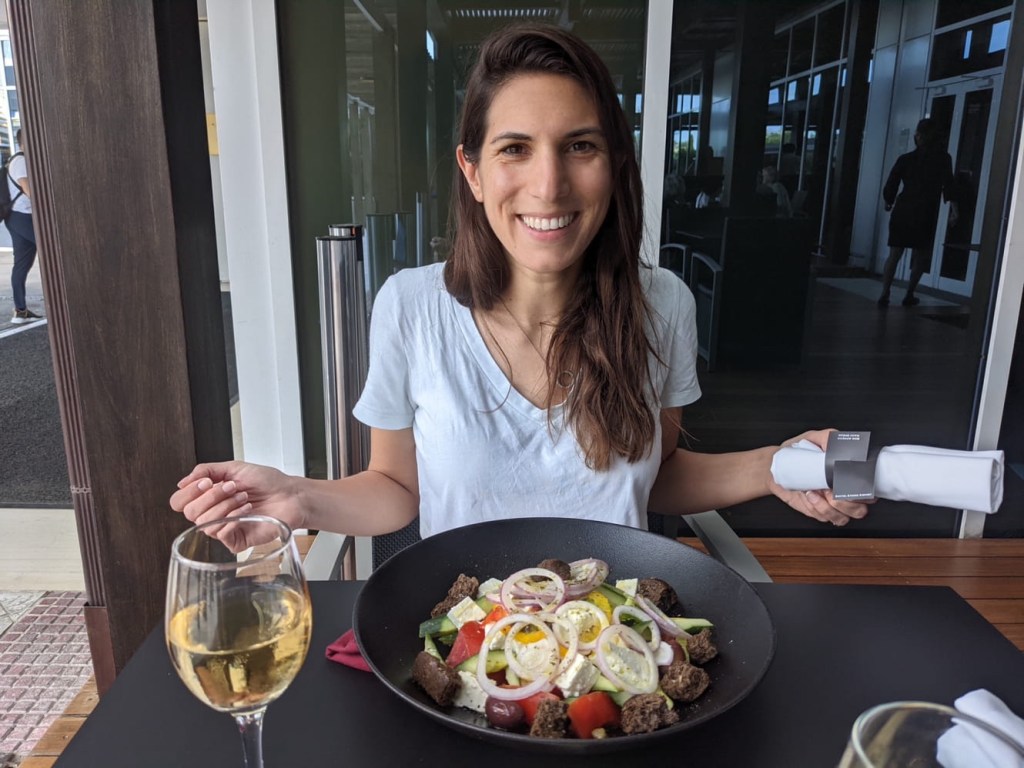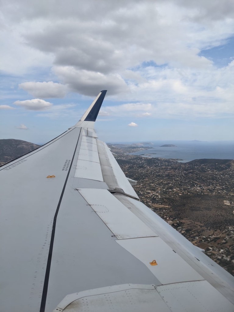 With a few hours before our connecting flight, Nicole got us into a fancy lounge with her priority pass, where we had some pide (Turkish pizza) and could relax for a while before proceeding to our gate for Aegean. I showed my inaccurate passenger locator form on my phone and we were boarded without incident with seats next to each other. A little more than an hour later, we landed in Athens.