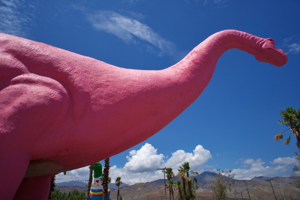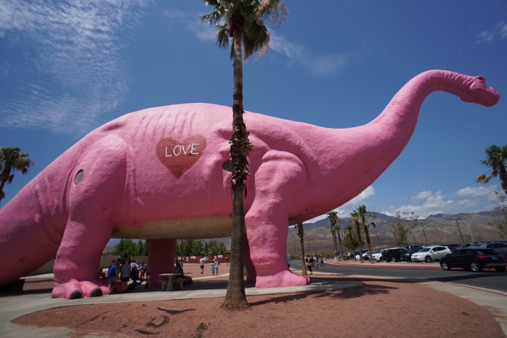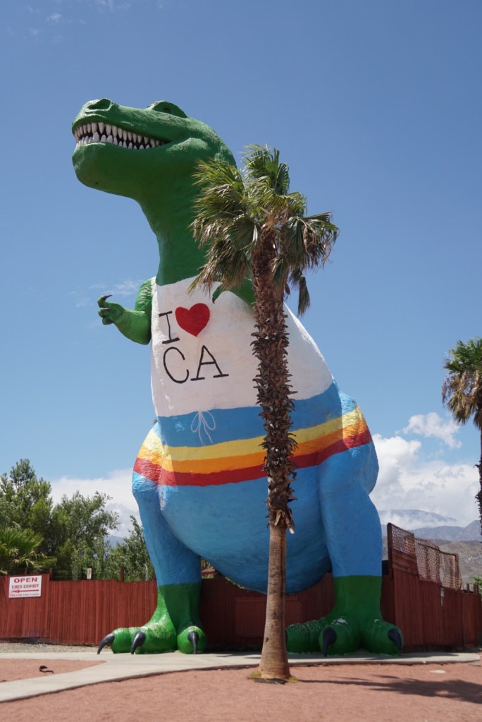 We embarked on our 2.5 hour journey around noon. We made a brief pit stop about 30 minutes outside of Palm Springs at Cabazon to see the dinosaurs you see before you. They have been featured in numerous movies, though the majority seem to be from the 80s such as Pee Wee’s Big Adventure or The Wizard. There are two large dinosaurs present – a T-Rex and an apatosaurus of sorts. There was another area behind the fence that was like a garden of dinosaurs, but there were large families and small children and it sounded really scary. We got back in the car and continued on our journey.