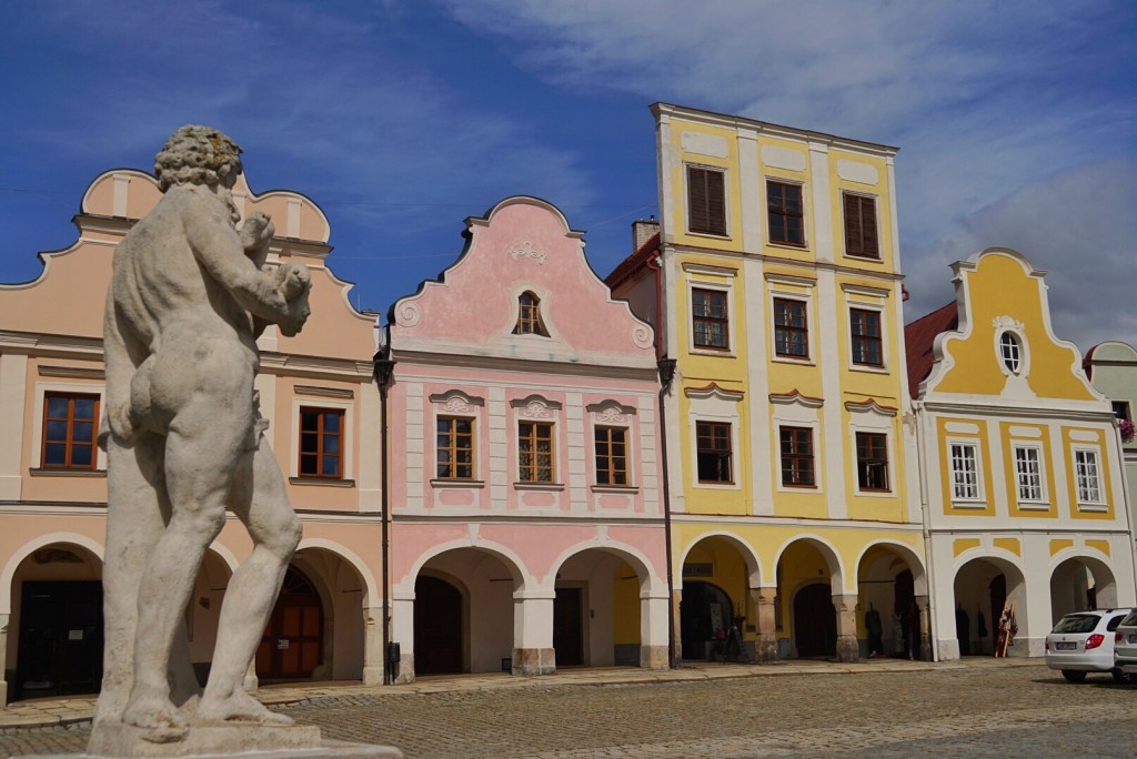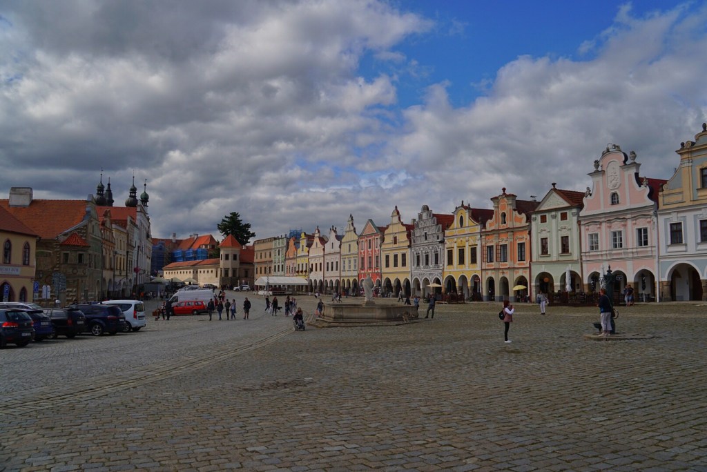 Eventually we were on the road, in our upgraded Skoda. We are not accustomed to having larger cars and the trunk was shockingly large. Usually we have to do some sort of Tetris to get our bags into some tiny hatchback’s trunk. After some heavy traffic in Prague, we made our way onto the open road and eventually to our first stop at Telc, a UNESCO heritage site.