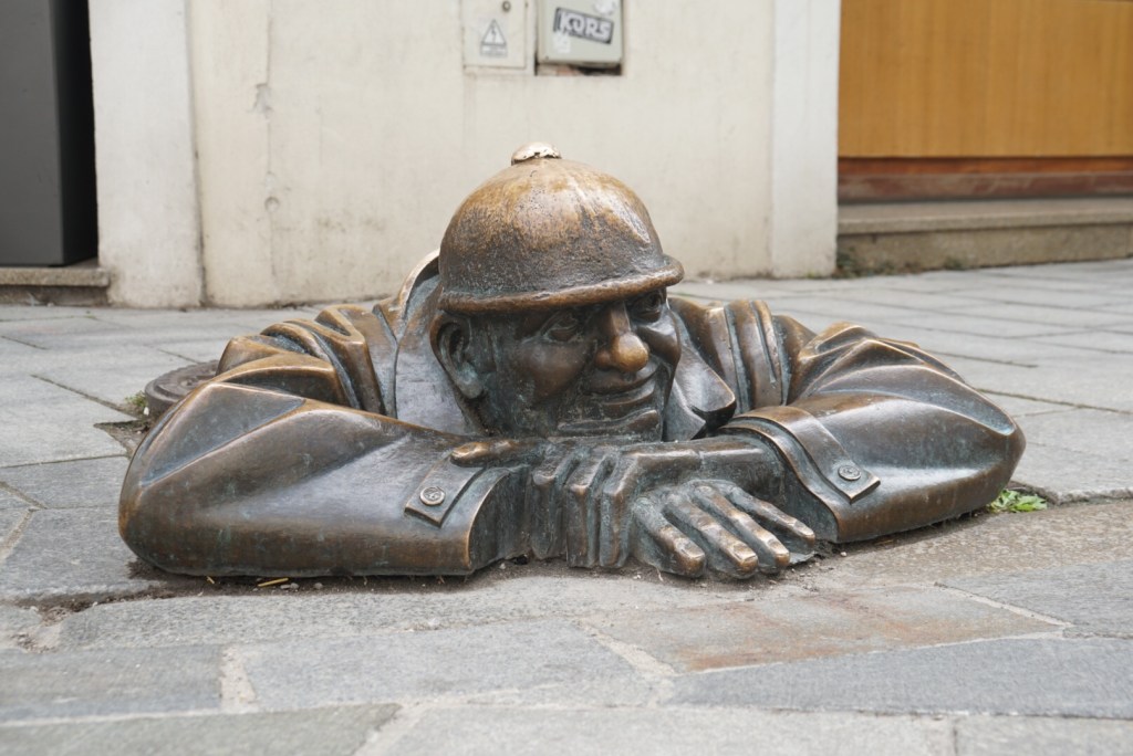 We traipsed from one eyesore to the next. Just around the corner from the plaza, was the state tv building, which was built as an inverted pyramid. It is regarded by the locals as the ugliest building in Bratislava, but it has its own charms.