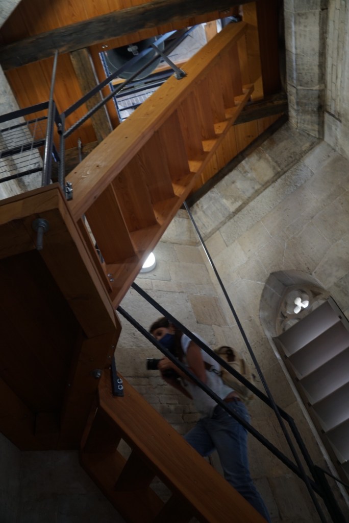 As it turns out, there was a lot to explore. Beyond the church and courtyard, there was also a crypt to descend into, and tower to climb. The steps were very narrow. Luckily Nicole and I were the only ones doing it, so we didn’t have to worry about opposite direction traffic at any point. We got nice views from the top, but they put up the metal fencing that drives me crazy, so it was hard to get a decent photo without the mesh.