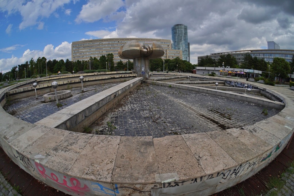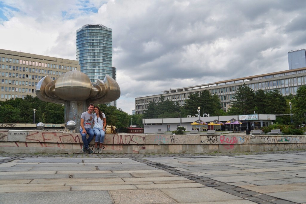From there we continued our walk out of the old town and headed toward some old communist architecture. There is an old fountain at Námestie Slobody, which has essentially just become a sad looking plaza. Evidently it was constructed so badly, the water in the fountain never really worked right and just led to cracks and leaks. There are a few architectural design sites in Bratislava that were meant to look futuristic, but now look a bit . . .dated, not unlike Dulles Airport.