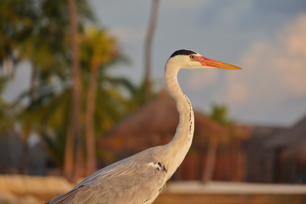 As I continued my wee stroll, I saw a big heron. I also saw a hundred tiny fish jumping in the air as if to get away from a predator. I would find out later in the day, that there was perhaps a shark just below the surface and still hidden in the limited early morning light. A bat flew over my head into the trees as well. The wildlife was active.
