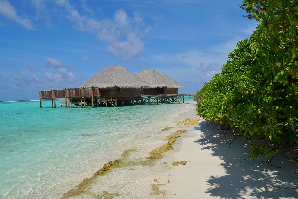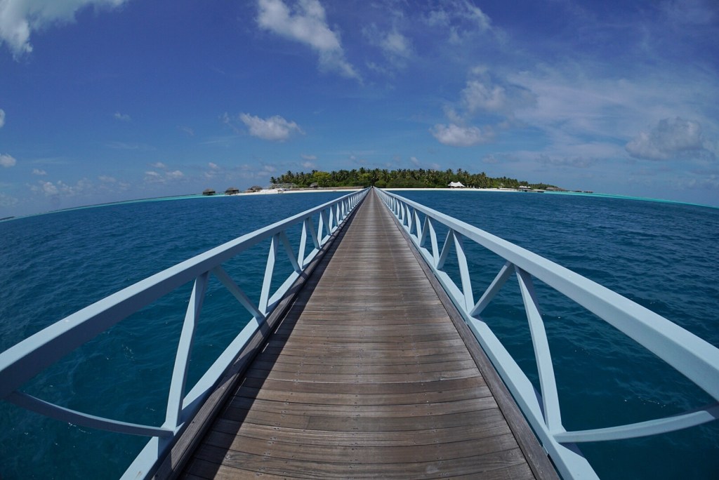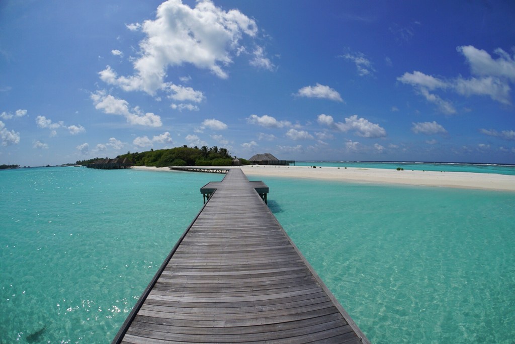 We then walked to the other half of the resort, which required a long walk on a bridge that connects the two. There is currently a lot of construction going on, so I don’t actually think people are staying on that half for the time being. The water on that side is a much richer and brighter tinge of blue, but virtually every hut and building is being worked on extensively, and looks like it will be at least a few months before it is ready to receive guests.
