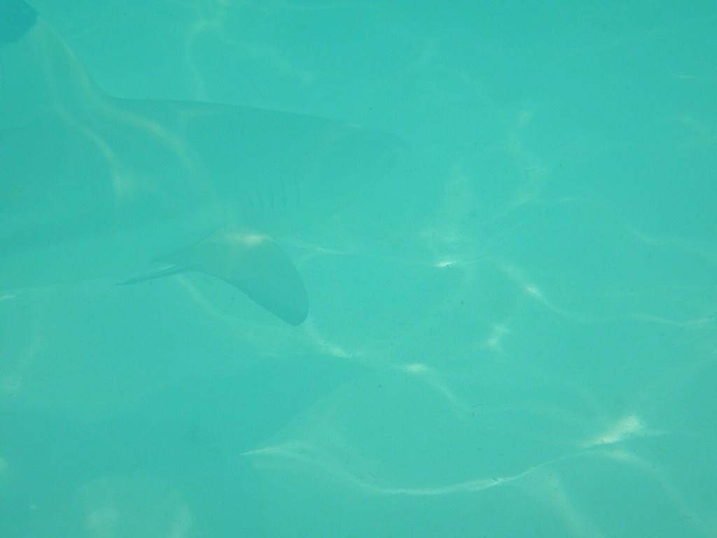 Nicole was sort of spotting me from the shallows and would point out where the sharks were. I tried to swim in their general direction, but they kept swimming away from me. In an odd twist, I was perhaps the scariest thing in the sea at that moment. Later on they seemed to get a bit more comfortable with my presence, but they never got much closer than five feet or so before veering off. Their priority was eating the little fish, so I made sure to keep my distance from the massive school so as to not get in the way of my new friends.