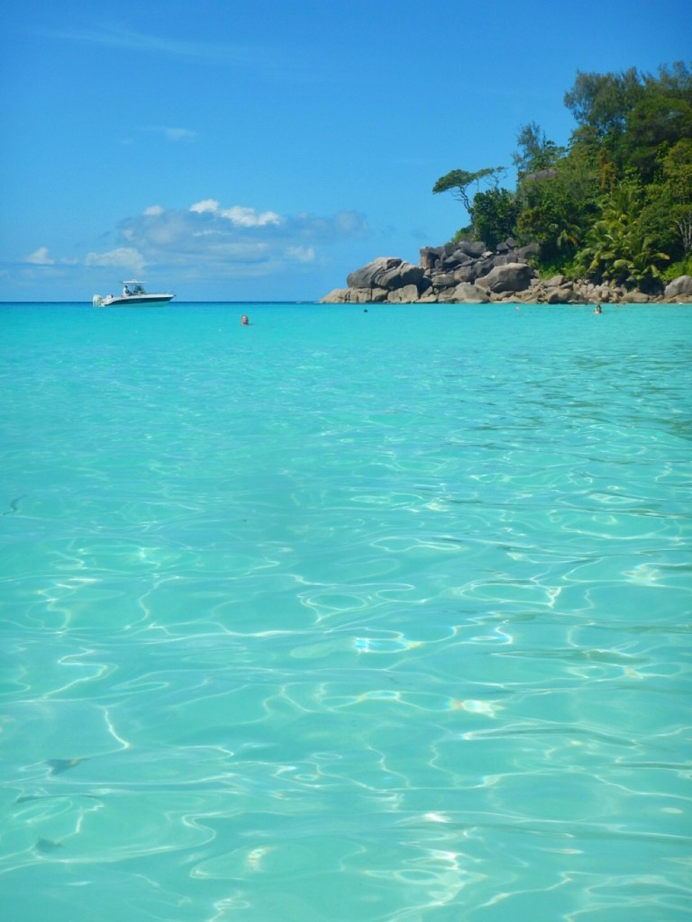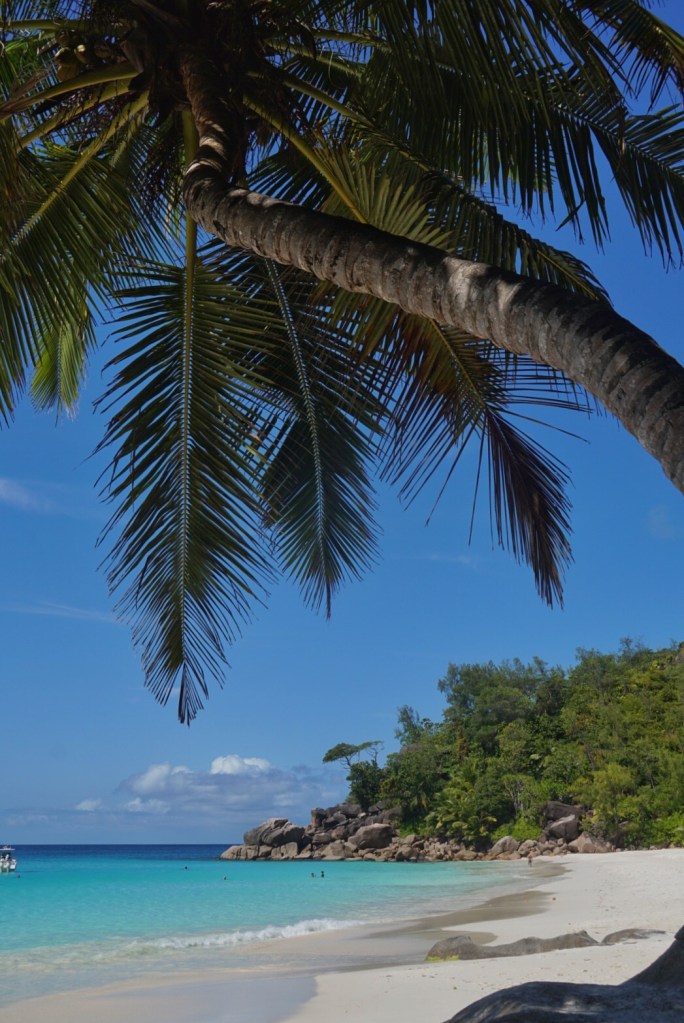 Because it requires requesting permission a few days prior to visiting, it is significantly less crowded beach than nearby Anse Lanzio. At one point, we were even able to find our own little nook with shade under some palms. The ants and other bugs found it too. We shared our shade with them somewhat unwillingly.