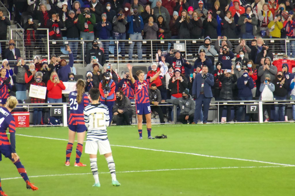 After getting settled and getting some takeout, we all set out for Allianz stadium in St Paul. It would be a near sellout crowd taking in Carli Lloyd’s final match. It must be a difficult thing to decide when to retire from a sport. Do you wait until the very last moment when your skills have deteriorated and you find yourself cut from the team entirely? Or do you do as Carli and go out in the best shape of your life, the top of your game, in hopes of ending it on a high note.