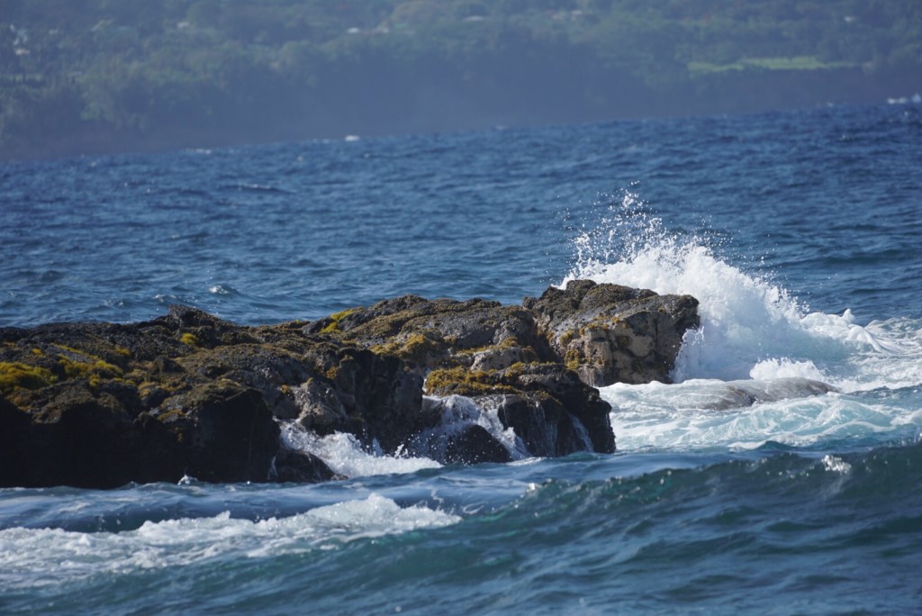 We had a fairly basic lunch of splitting a BLTA and a spam musubi before heading down the coast in search of a nice beach. One major downside of the nice weather occurring on a Saturday of all times, is that every beach was inundated with locals doing barbecues and other family events. Parking was nearly impossible. We had hoped to find a fairly calm place to perhaps spot some green sea turtles, but the large amount of keikis (kids) in the water pretty much guaranteed that no mentally sound sea turtle would dare venture into these waters.