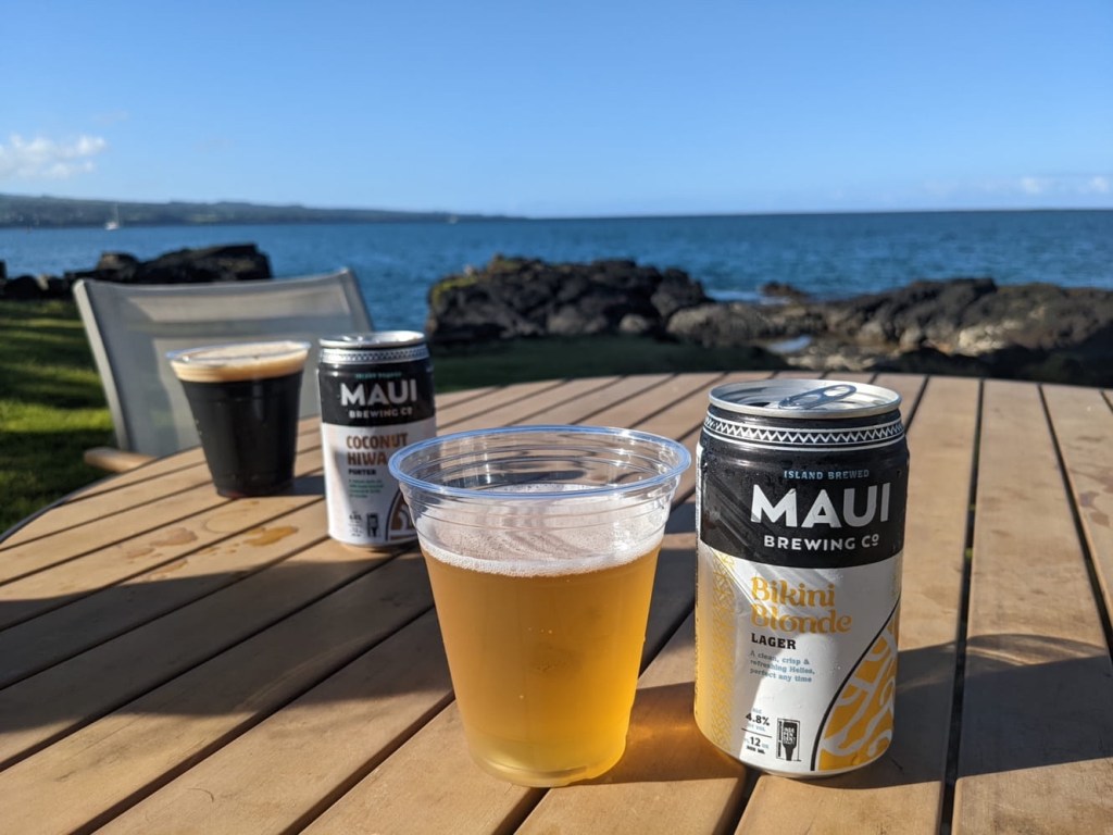 All the walking around in the sun left us a bit parched and in need of beverage. Unfortunately, the SCP doesn’t really have any sort of restaurant/bar, so we went over to the DoubleTree/Grand Naniloa to grab a couple local-ish beers. They were rather refreshing and we enjoyed them with the nice backdrop of the ocean and Hilo bay. We went back into the town of Hilo for a quick dinner, which on Hawai’i took much longer than anticipated. We ended up getting pizza, but the service was a bit on “island time.” We stopped at the neighborhood Long’s on the way back to get some beverages for our adventures to the volcano tomorrow.
