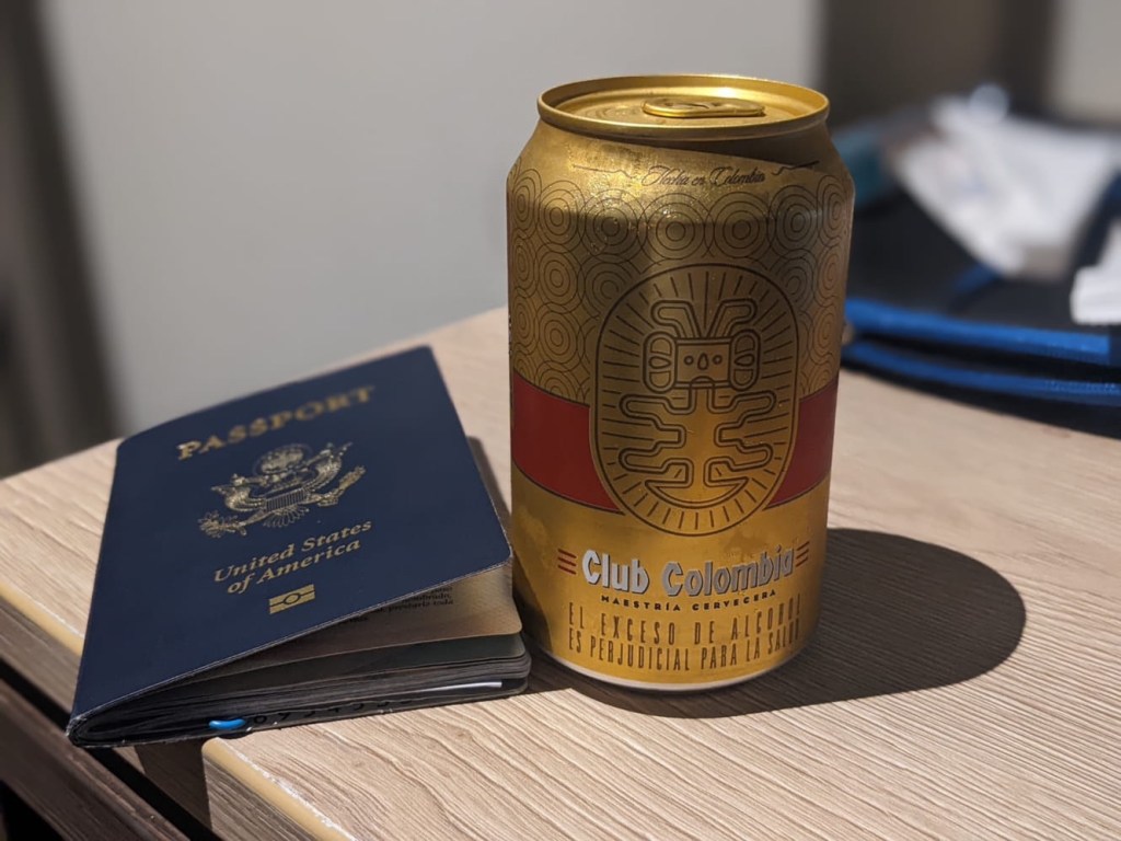 Our traveling is not over. We have to get up early tomorrow to make our way back to El Dorado International to head down to Guayaquil and (hopefully) all the way to Baltra in the Galapagos. Because of Nicole’s Diamond status, we got some free beverages. I had myself a local brew before filling out some government forms, listing for flights, reserving a hotel, and finally calling it a night. Hopefully tomorrow goes smoothly.