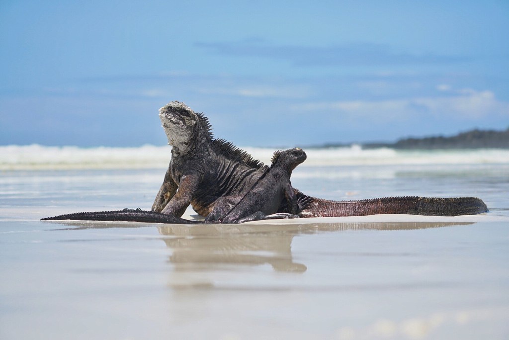 They looked like little dinosaurs or dragons with a rather fierce countenance. While we observed the pair at the water’s edge for a spell, nobody else seemed to really care at all, as if marine iguanas just hang out at all beaches around the world. I found it a bit perplexing. With no protection from the shade, the sun felt very hot. We are after all quite close to the equator (hence the name Ecuador by the way).