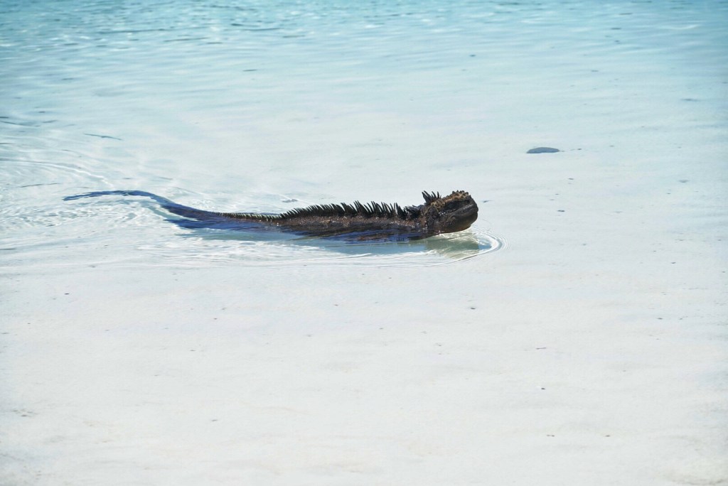 After regaining a tiny amount of strength for the return hike, we set out once more underneath the sun. We stopped near the lava rocks that split the beaches, where we watched some more marine iguanas swim ashore to rest. They really are fascinating creatures. We saw some people swimming or snorkeling unfazed while the marine iguanas swam right next to them. Are people just completely oblivious or are marine iguanas that boring to people?