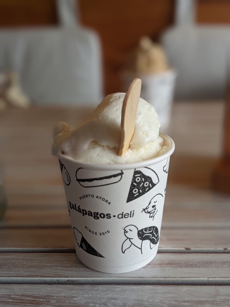 Anyway, we finally made our way back to the path, which by now had very little protection from the sun. We fantasized about beverages. We brought some water, but it had long since been consumed. After walking for maybe 40 minutes from the start, we got to the Galapagos Deli. This establishment would get some good business from us today. Our first order of business was to get some beverages. And the ice cream also sounded rather appealing. Coca-Cola (the real sugar kind) with coconut ice cream is a rather delightful combination.