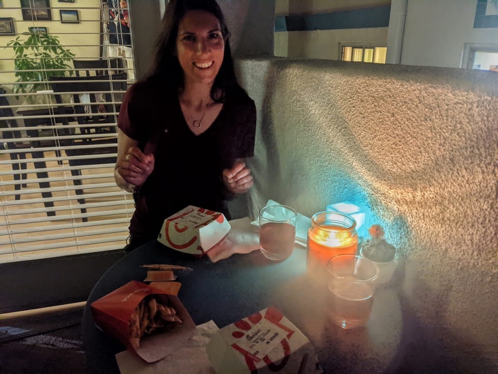 After some seven hours or so, we touched down in Los Angeles. Nicole and I flew through customs thanks to our Global Entry, which shockingly is unrelated to Nicole’s Hilton Honors Diamond status. Within thirty minutes of parking at the gate, we were ordering Chick-Fil-A and sitting out on our balcony enjoying a nice warm evening back home.