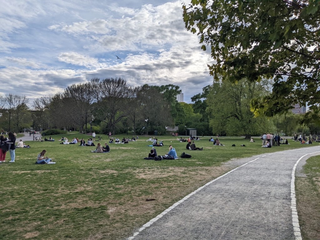 There were a lot of people out considering it’s a Wednesday. We gradually headed in the direction of our hotel by crossing a bridge to parallel the water. This is apparently the kind of day that Stockholmers live for. People were out walking, running, and SUNBATHING in this “gorgeous” 65º weather.