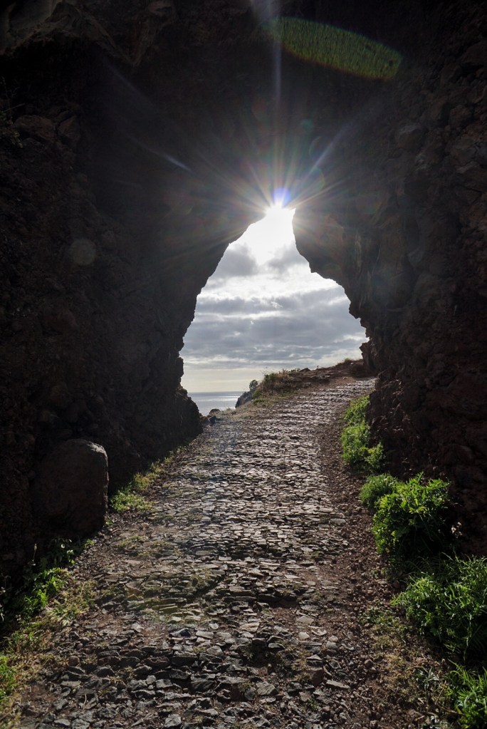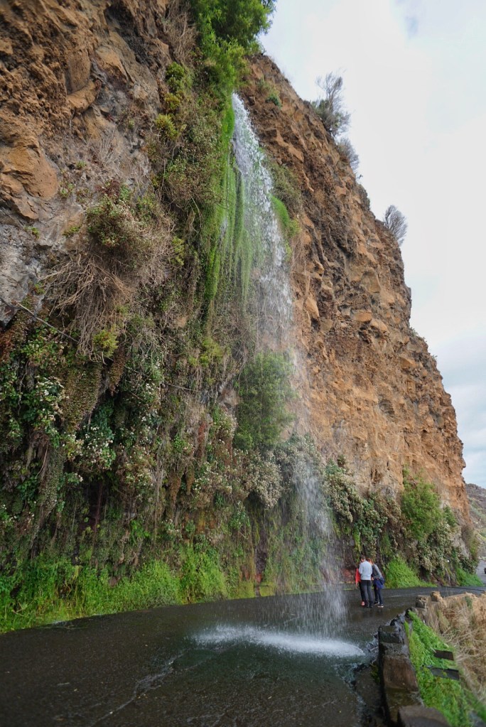 Within ten minutes, we arrived at a waterfall that actually falls over the road. We circled back around and made another stop near a small path leading up the hillside and decided to check it out. One path led through a small natural window in the rock while the other went up the opposite direction and yielded views of the coastline.