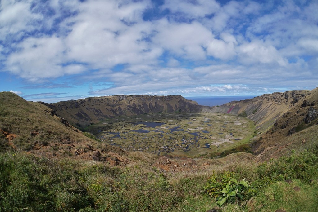 It was slightly awkward on our way out because I think something got lost in translation. I think he thought he was going to be our guide for the rest of the day, but the Jimny really only has room for two. We continued onward without our new friend. We hope we let him down easy. Our last stop for our half day tour around the island was the Rano Kau overlook, a viewpoint into the caldera near the town of Hanga Roa.
