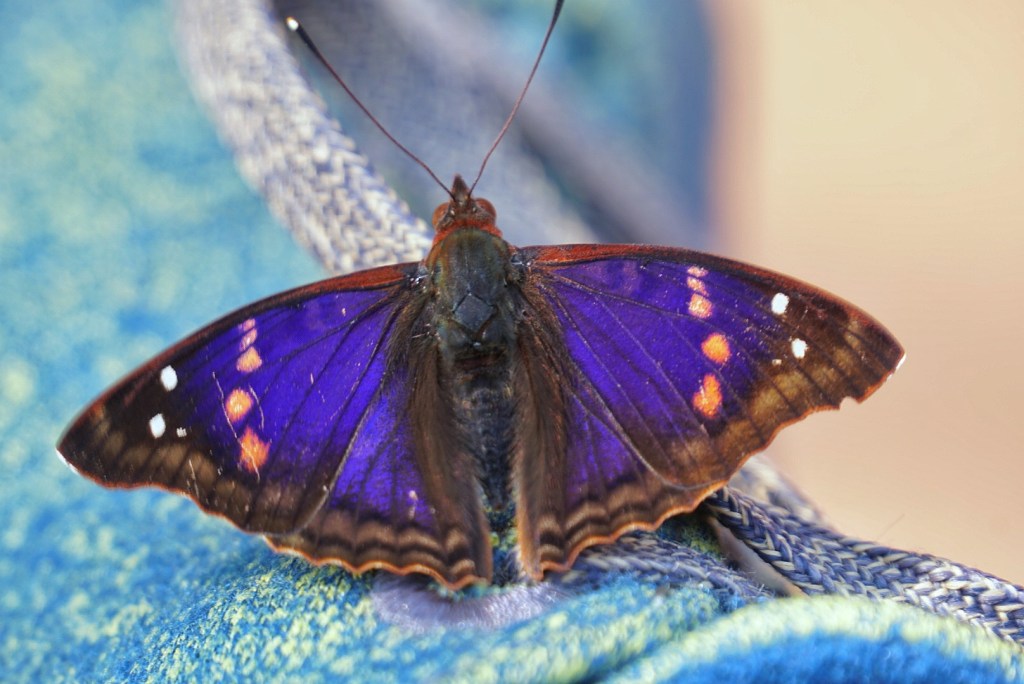 There is a thing called the Jungle Train that takes people from the park entrance to the area where the trails begin and another stop much further down the rail at a place called La Garganta del Diablo. We had to wait about 25 minutes or so for the train, but I spent the time taking pictures of a butterfly that was mesmerized by my shoe.