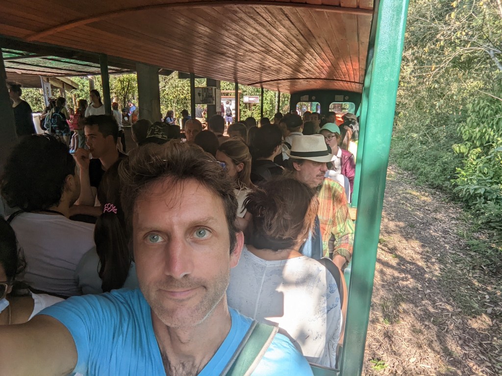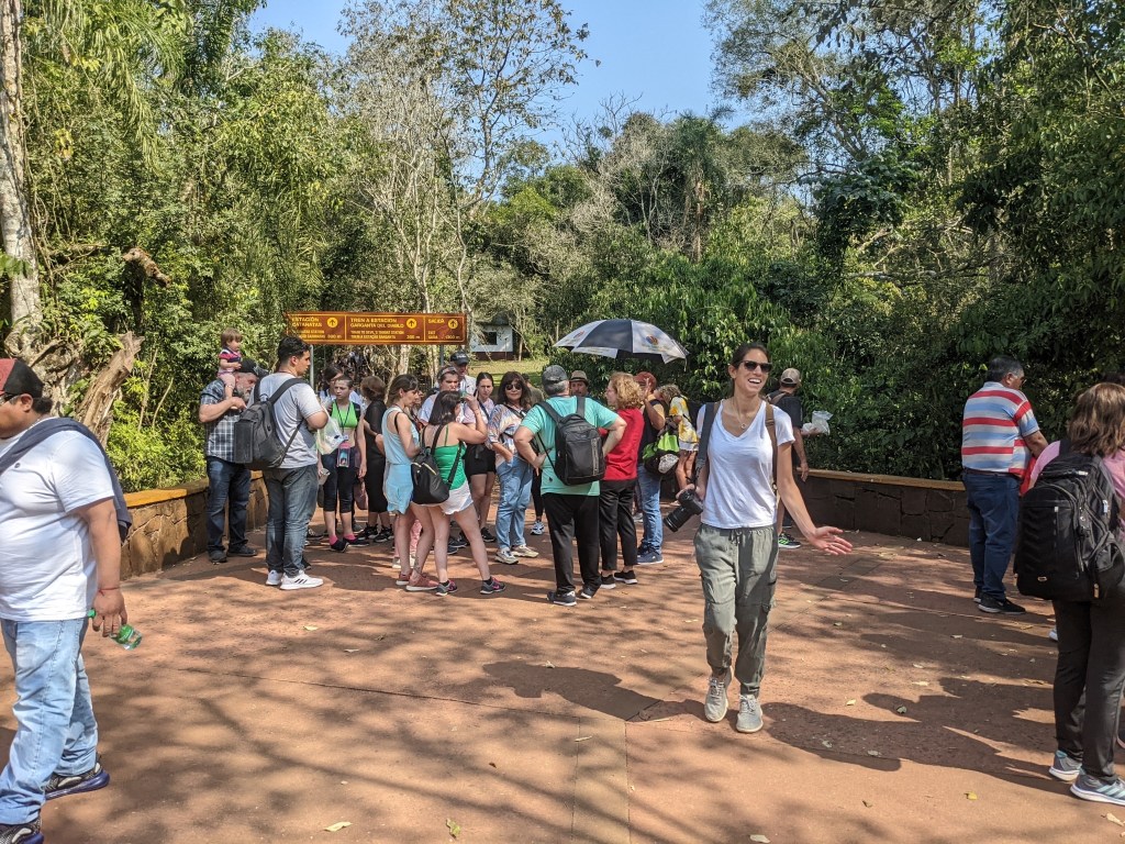 We didn’t feel the need to get to the falls at rope drop, particularly since we got in late yesterday evening. We wanted to get a bit of rest. We are currently in a time zone that’s actually ahead of U.S.east coast time, so our body clocks are slightly confused. Anyway, we set off for Iguazu national park around 1030am, having purchased an 11am slot the previous evening. This helped us a bit upon arrival as we noticed a rather large line just to buy tickets.