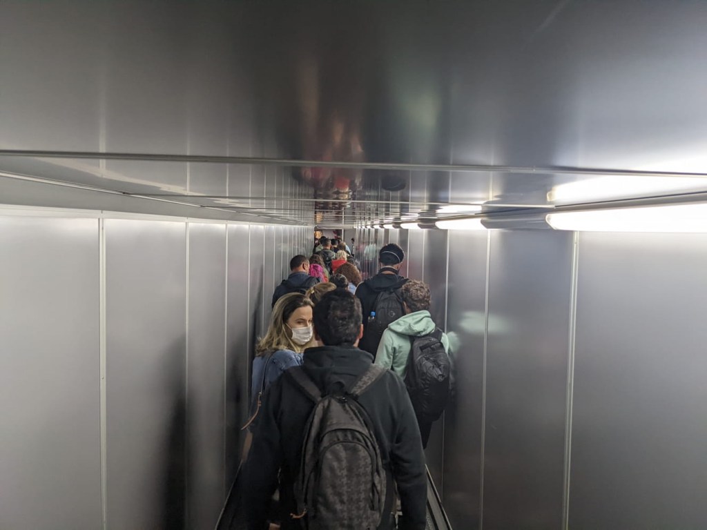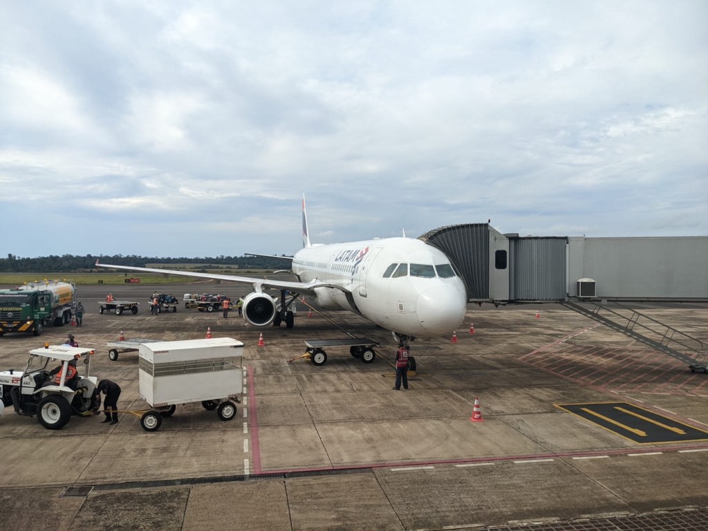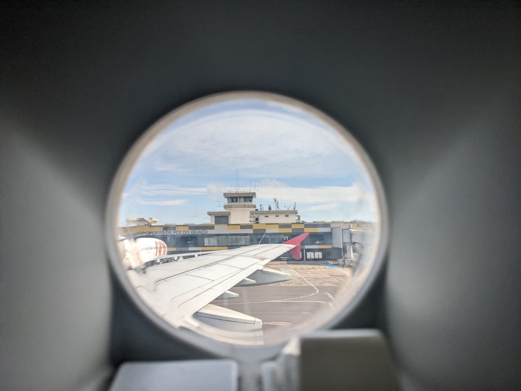 After checking out, we requested a taxi to take us to the airport on the Brazil side. As soon as we left the driveway of the hotel, we encountered a backup of traffic to cross the border. Luckily, we were in a taxi which afforded us a bit of line cutting. Even still, it took probably 30 minutes to go through both sides. Argentina seems to be anti-stamp, so we weren’t even there as far as our passports are concerned, but we did get a new stamp from Brazil, where they also checked vaccine cards. Fun fact: Brazil used to require a fairly complicated and inconvenient visa to enter the country. This went away temporarily during the 2016 Olympics, and the results proved far too efficient to bring back. They also used to require some sort of health declaration during the pandemic, but I guess the website was very glitchy, so they’ve stopped doing that too. It was a fairly short drive from the border crossing to the Foz do Iguaçu Airport which is only probably five miles from the Cataratas del Iguazu Airport on the Argentine side. The two airports don’t really seem justified, but perhaps it’s a matter of national pride.