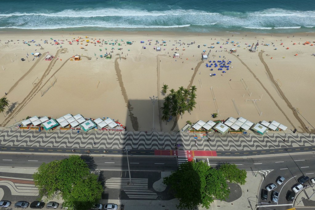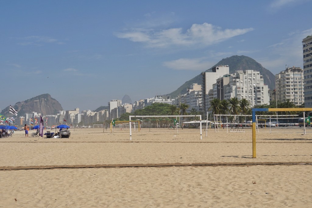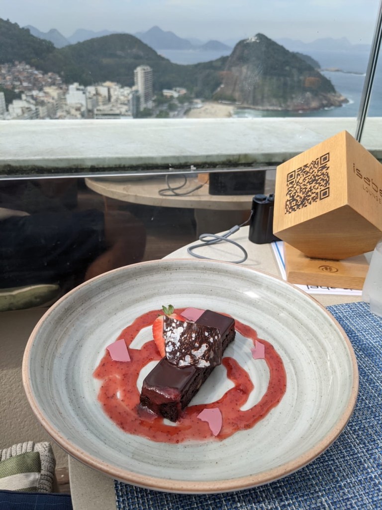 The driver took us on a possibly longer, but maybe more scenic route along Ipanema beach, as referenced in “The Girl From Ipanema.” It was perhaps even busier than Copacabana. Feeling somewhat exhausted from a morning of failure and riding around in Ubers, we retired for a lunch on the rooftop of the Hilton, where we split a cheese and tomato sandwich and I had a brownie because I was good.