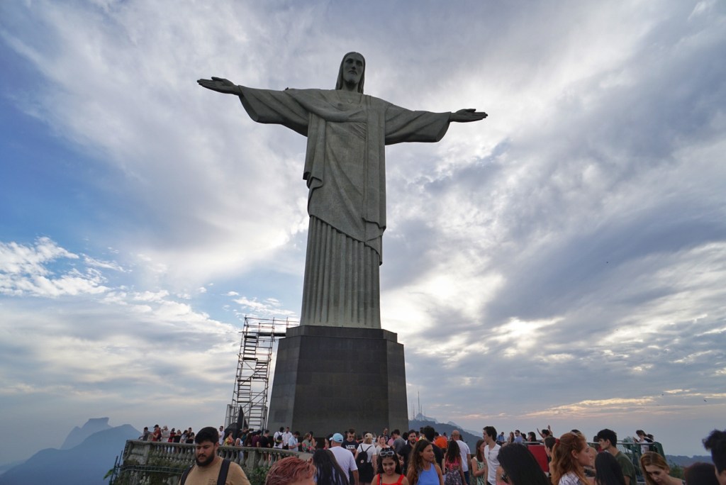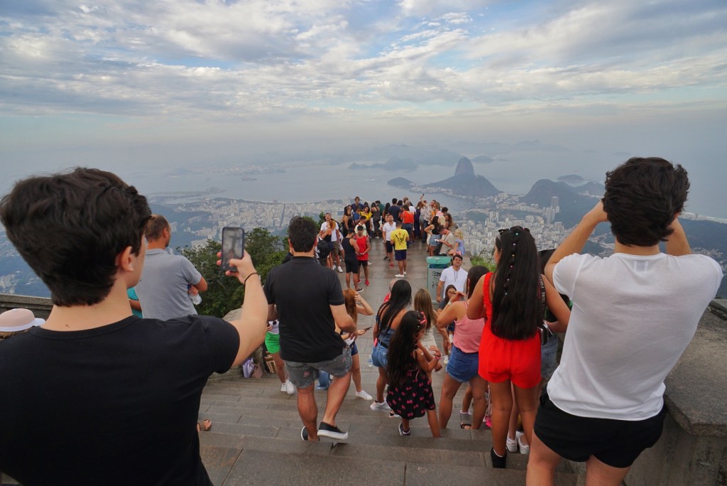 Our train had a fair amount of open seats, but it is evidently common to fill up many hours in advance during “high season.” With that being said, we most definitely did not have Cristo to ourselves. Following the 20 minute cog train ride, we walked up a series of stairs until we caught our first glimpses of Jesus’s back side. Most people were naturally on the other side taking selfies in a big way.